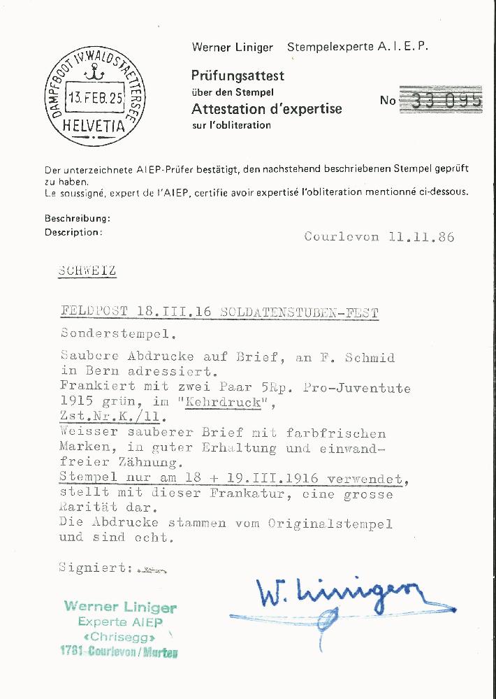 | Prüfer: | Liniger, Werner (AIEP (Association internationale des experts en philatélie)) |