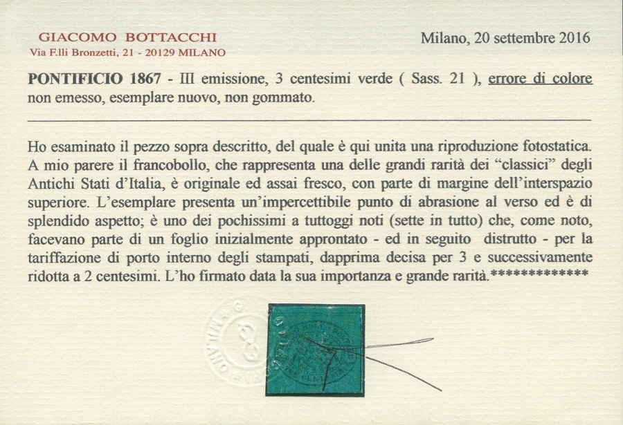 | Prüfer: | Bottacchi, Giacomo (AIEP (Association internationale des experts en philatélie)) |