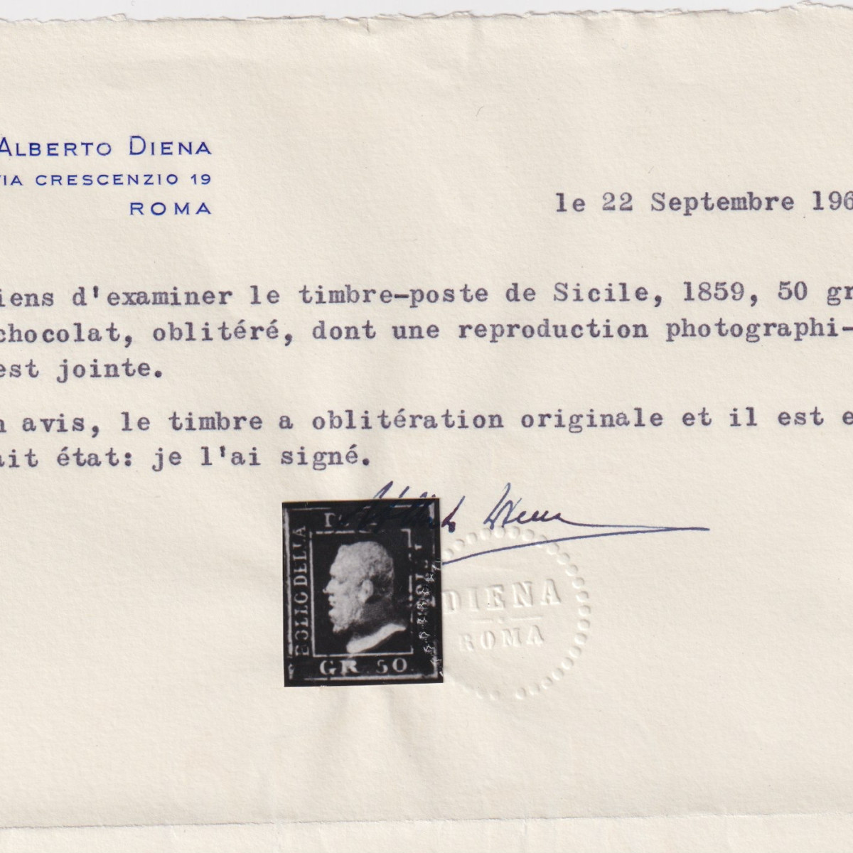 | Zusatzinformationen und Suchstichworte: | Historisches Zertifikat von Alberto Diena zu dieser Altitalien-Rarität. |
