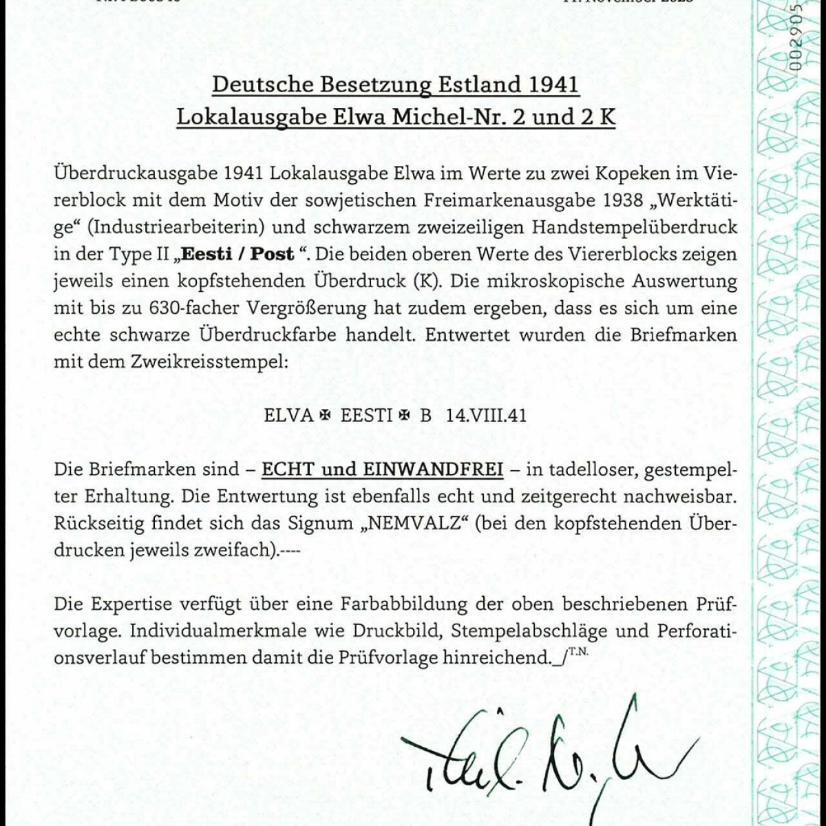 | Prüfgebiet: | Deutsche Besetzung WK 2 Estland Elwa |