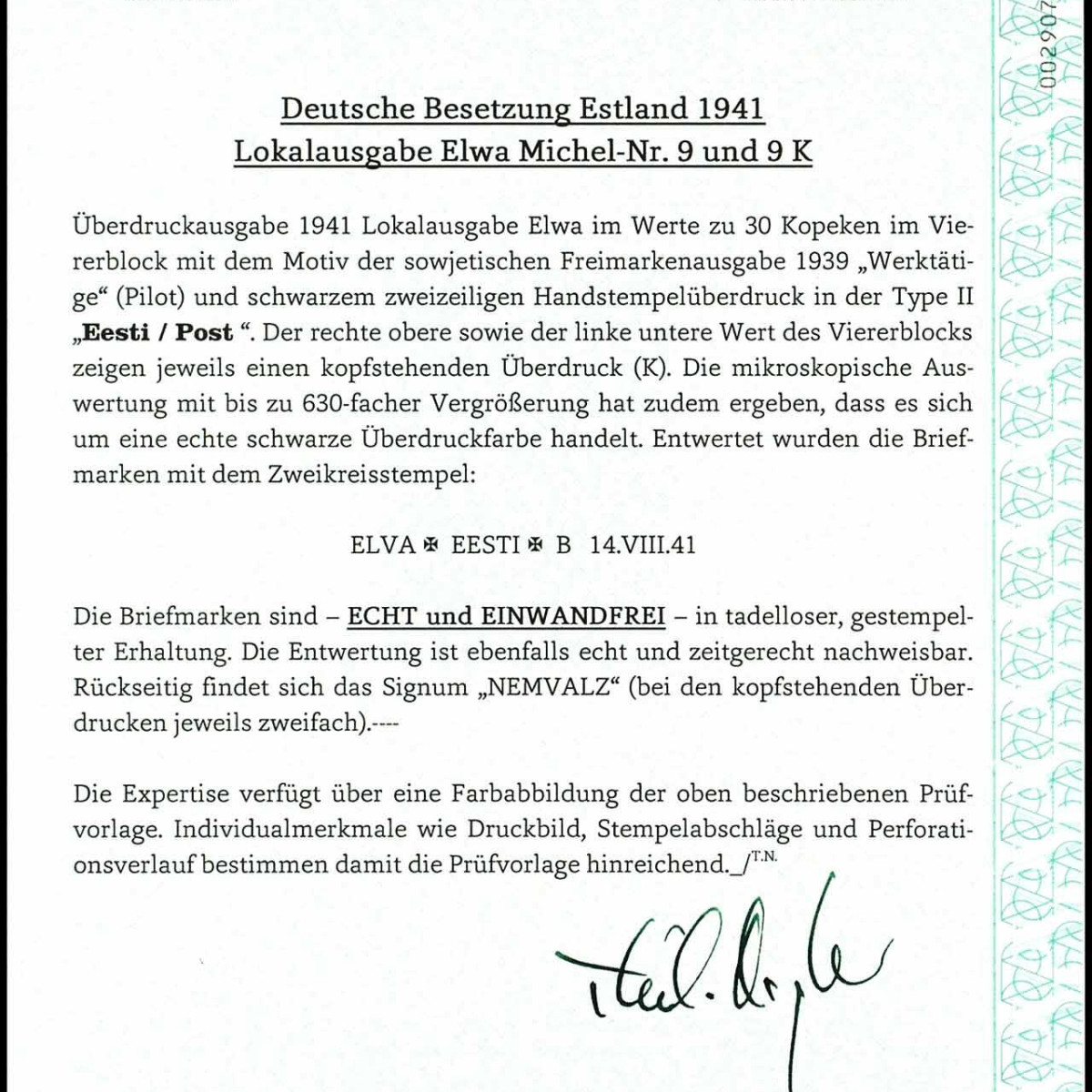 | Prüfgebiet: | Deutsche Besetzung WK 2 Estland Elwa |